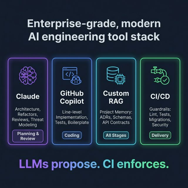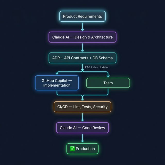 How I combine Claude, GitHub Copilot, and a RAG pipeline to ship features faster, reduce production incidents, and keep architectural decisions grounded in reality — and what it means for the teams I work with.