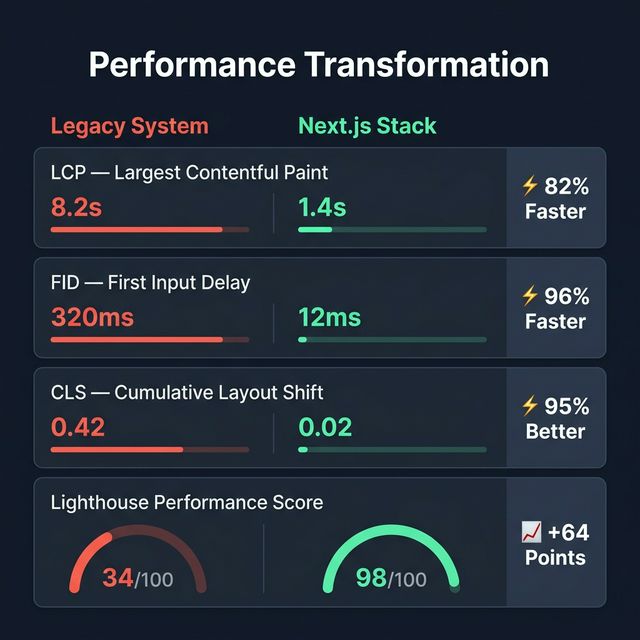 - Frontend Bloat: A heavy, client-side rendered SPA that punished mobile users with terrible Core Web Vitals.